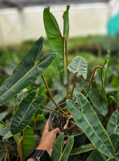 Philodendron billietiae [ pronounced “bili ətiā”] is a hemi-epiphytic species of plant in the genus Philodendron native to Brazil, Guyana, and French Guiana. A relatively recent discovery in 1995, P. billietiae is known especially for its distinctive orange-yellow petioles and wavy, ridged leaf edges